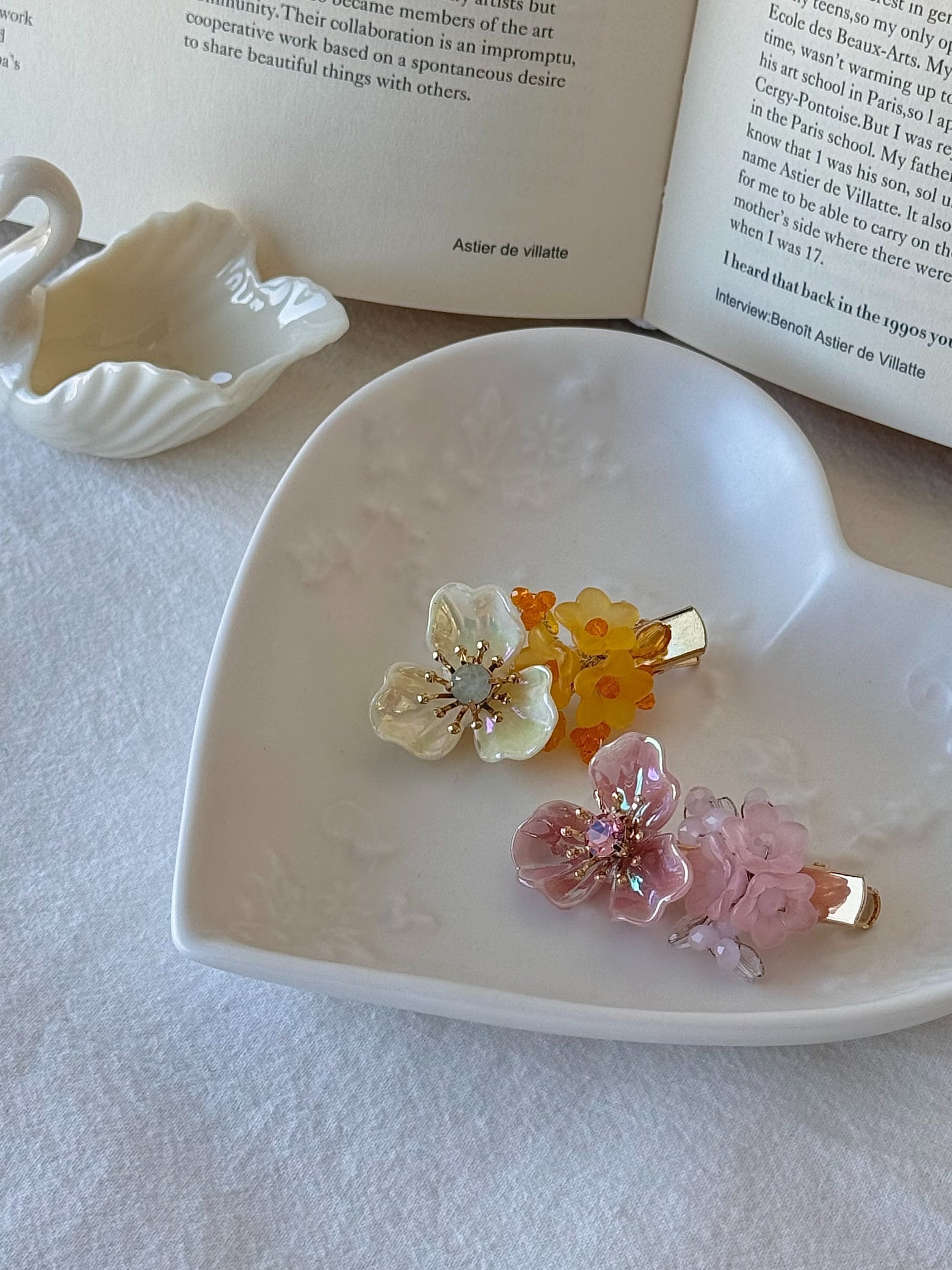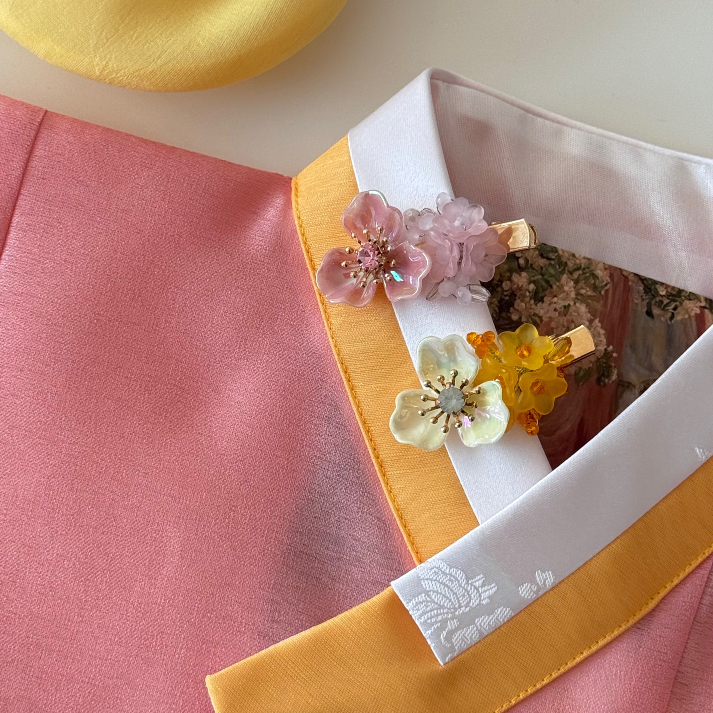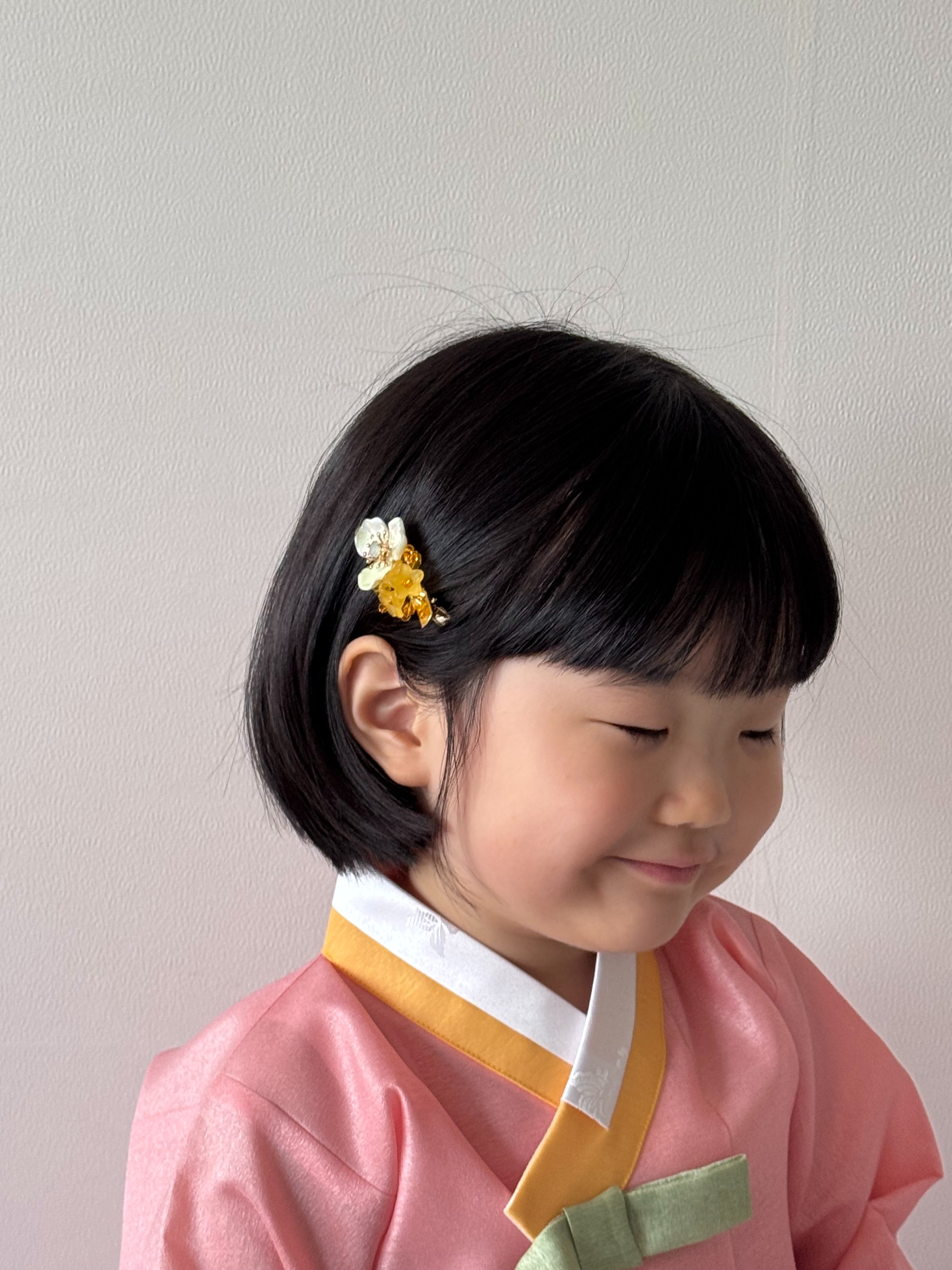 粉色如初開的櫻花般嬌羞,黃色則像午後陽光下的洋甘菊,充滿朝氣,水鑽小巧卻奪目,非常精緻的獨家設計款,無論是自然披髮還是編髮點綴,都能為您與寶貝的髮間增添一抹精緻與高雅,也能是上學、外出遊玩,還是生日派對,都能為造型加分,留下最可愛的笑容 。