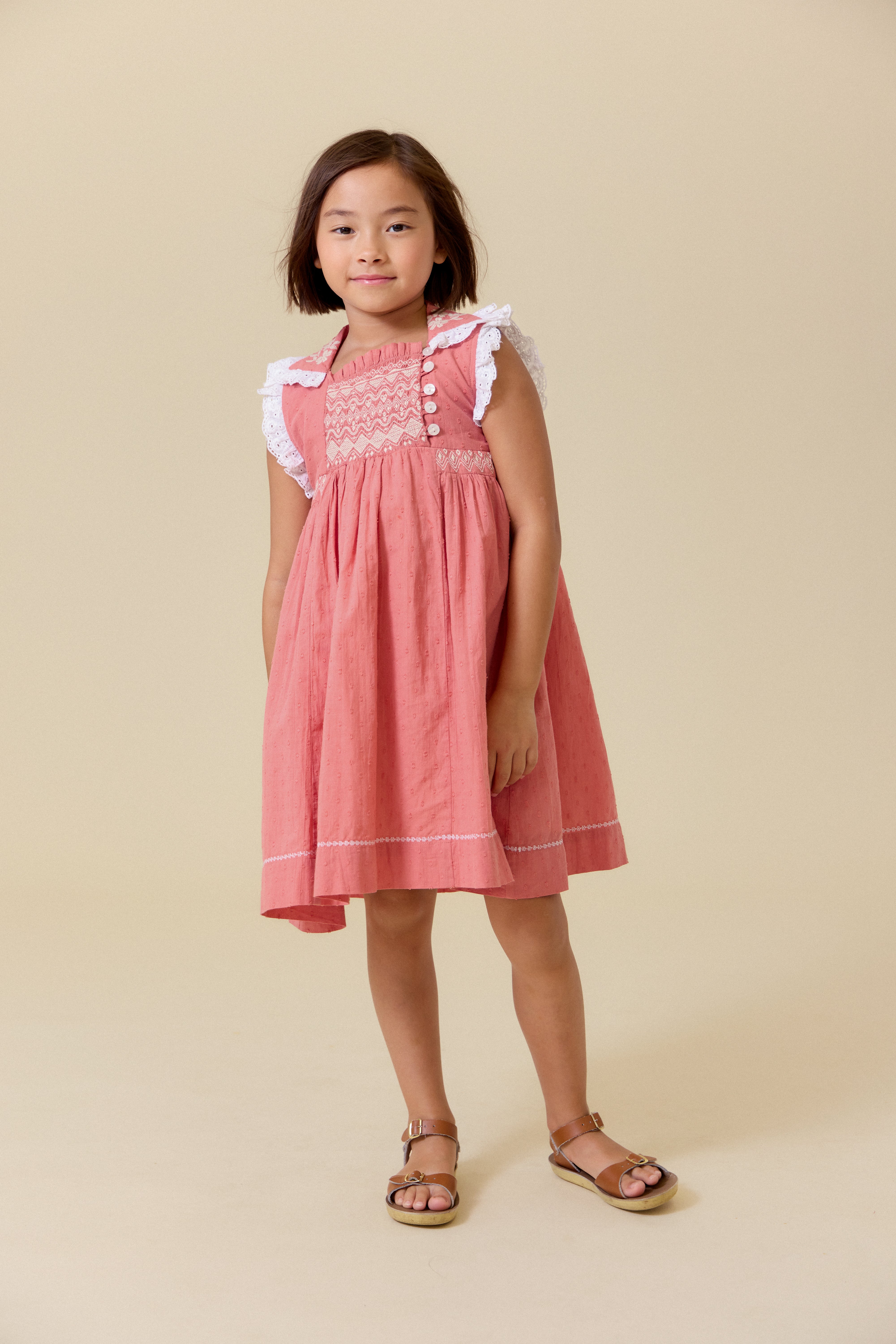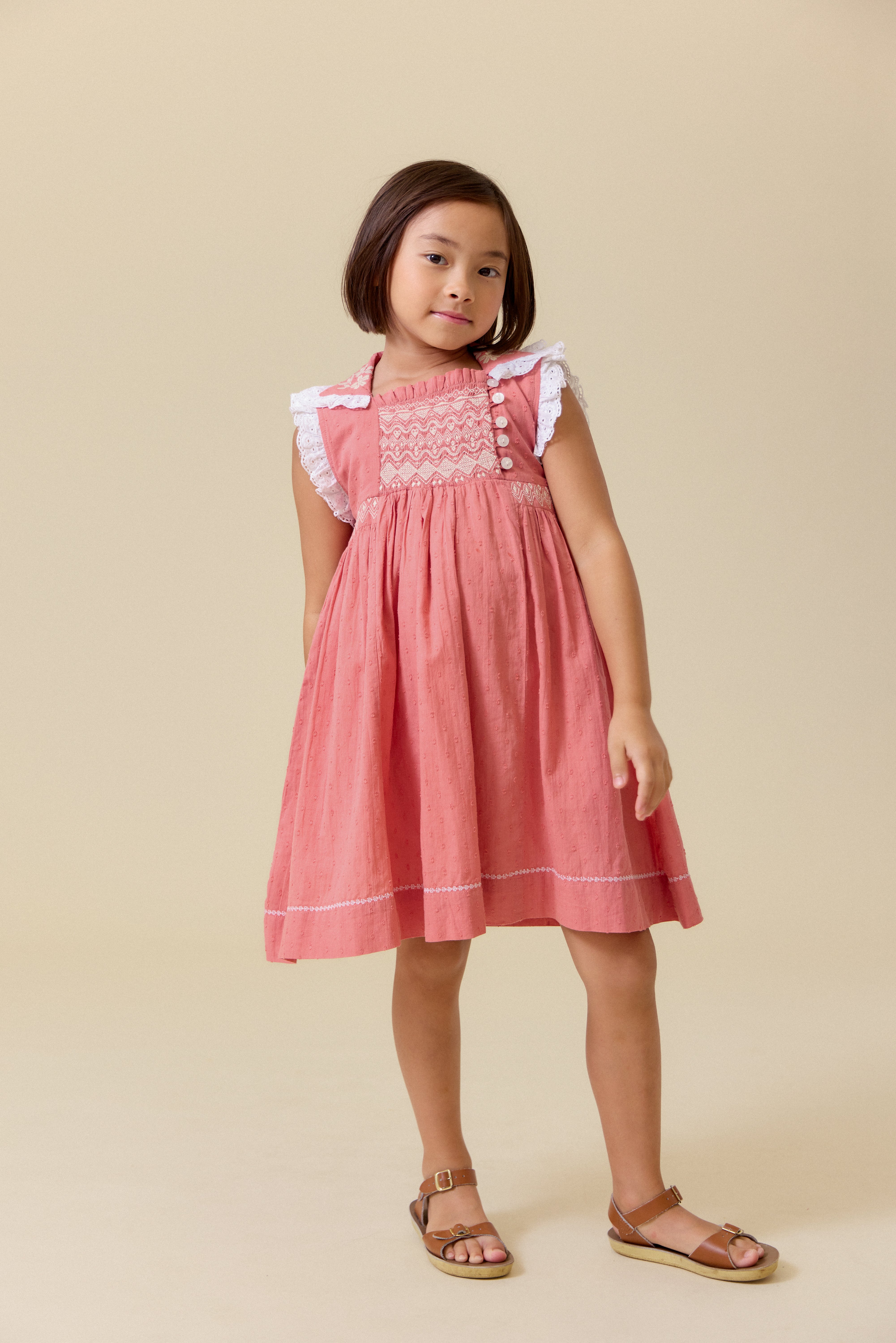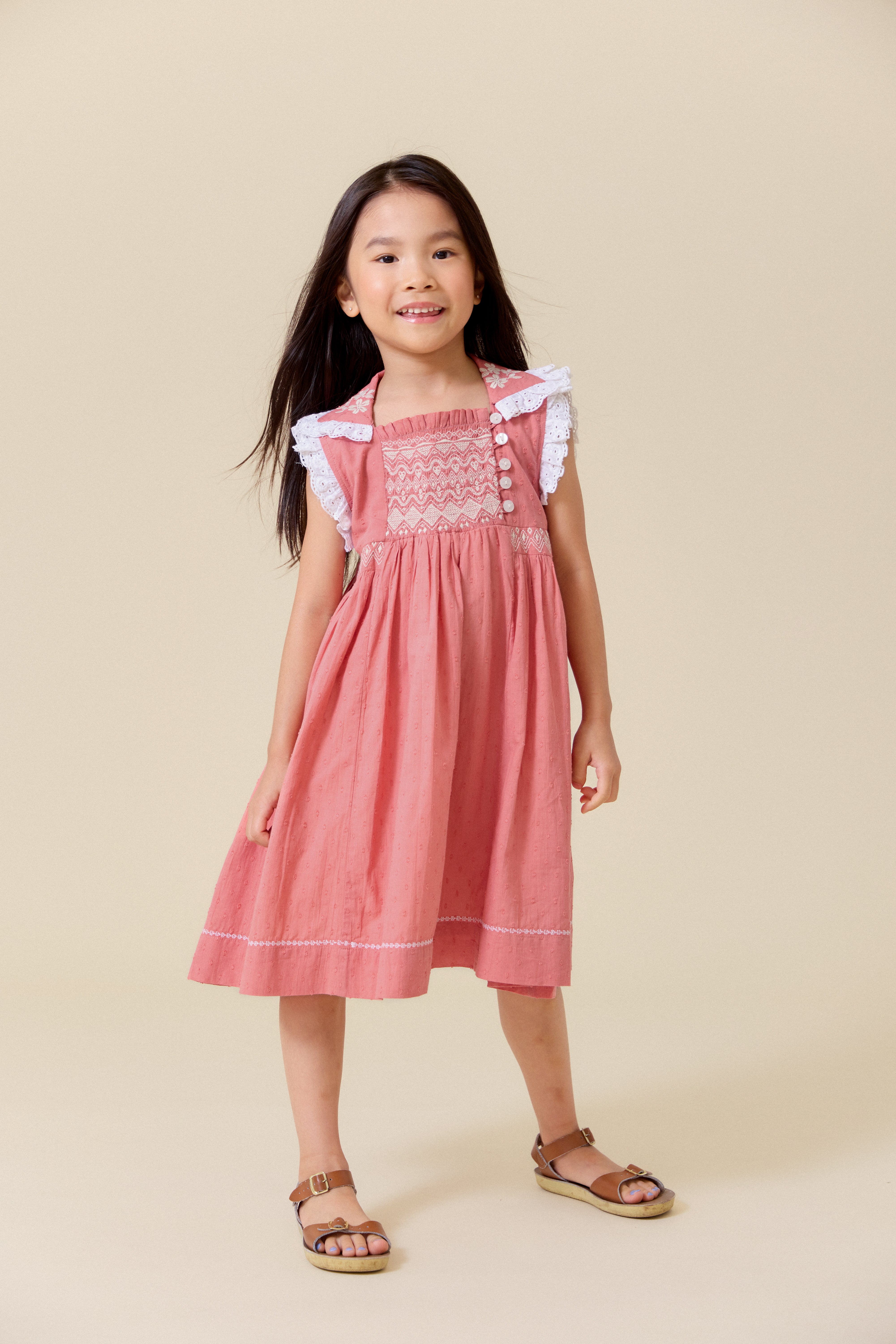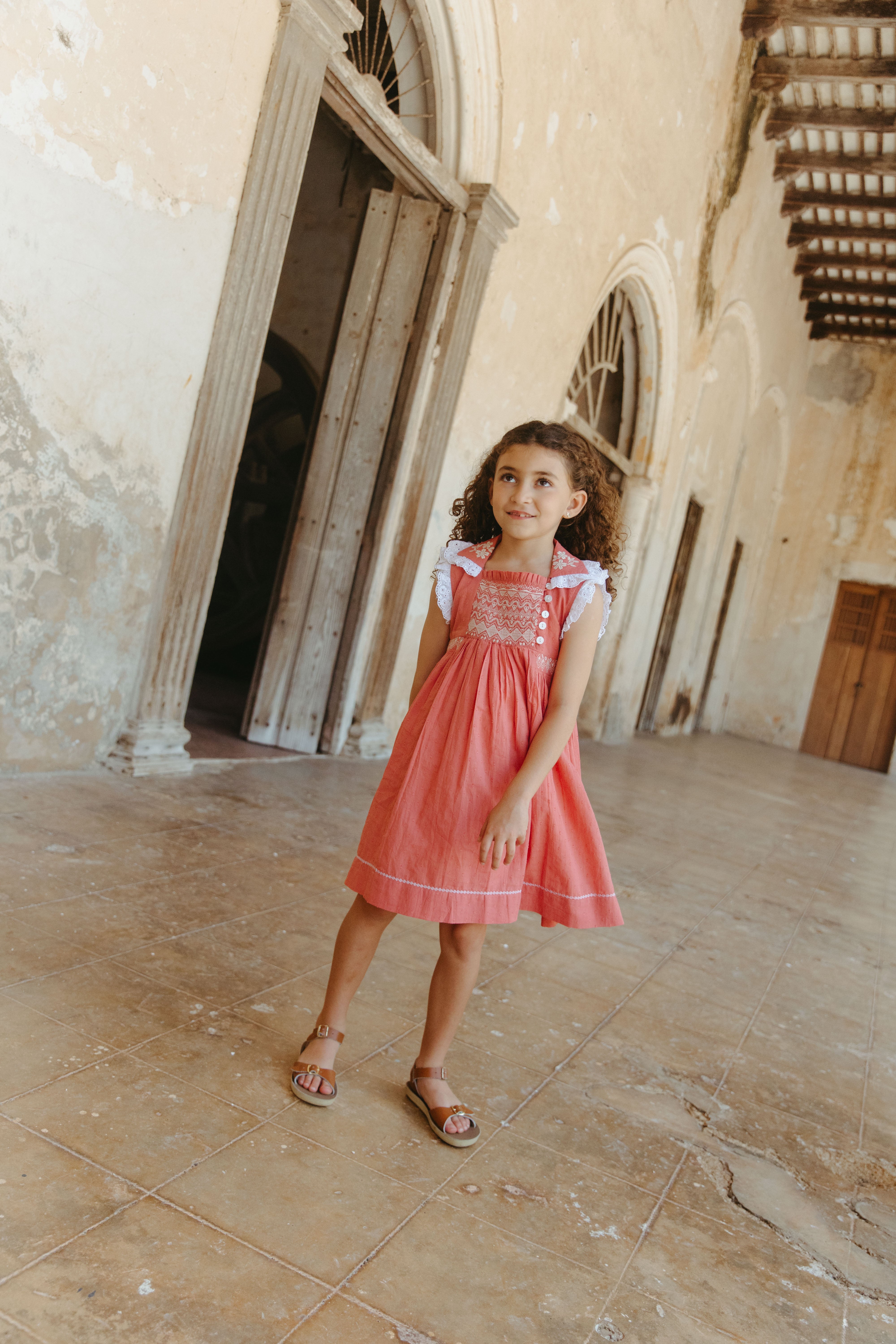 這款全新演繹的伊斯拉連身裙,採用瑞士圓點提花棉面料,並配有全襯裡,穿著舒適。其亮點在於精美的褶襉圍兜,飾以巴希卡塔刺繡和鏤空花邊,展現質感與藝術氣息,成為引人注目的視覺焦點。領口周圍的精緻刺繡更添一絲優雅,讓這款洋裝既別緻又易於穿著,適合各種場合。