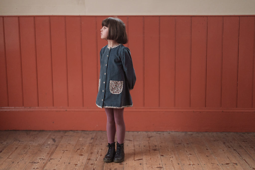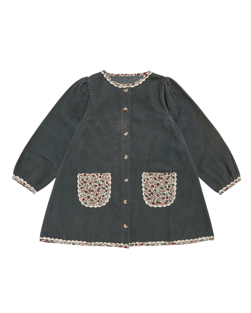 Little Cotton Clothes, Jules Dress - Velvet in Juniper 經典有機棉天鵝絨A字花卉口袋洋裝 杜松子 4-9y
