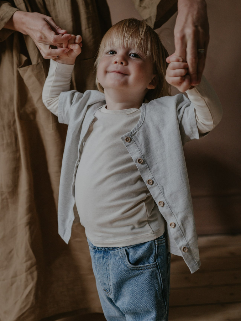Carbon-brushed for *unbelievable* softness, our long-sleeve top is the warm and cozy wardrobe staple you’ll reach for daily. This versatile style gently hugs the body with hidden shoulder snaps on sizes NB to 24 months, and pairs perfectly with our Everyday Legging.