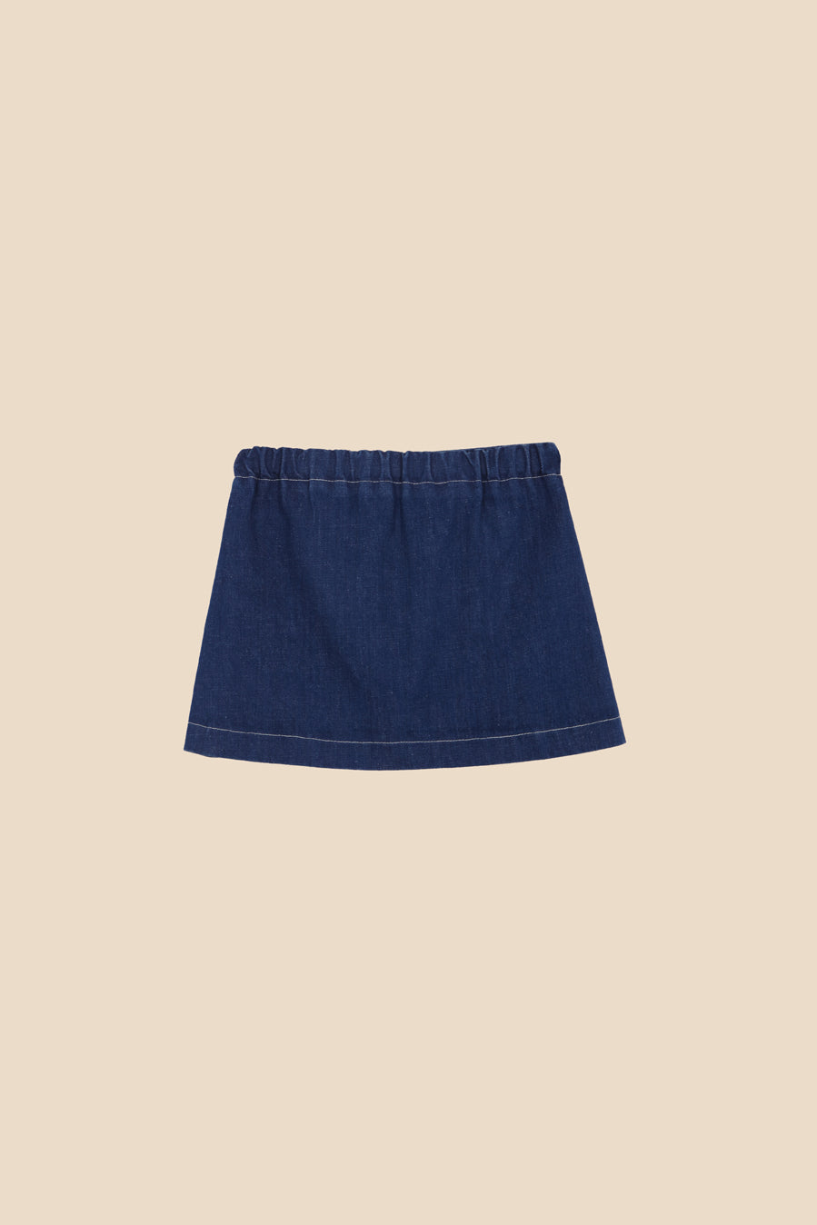 A字俐落的迷你裙剪裁,裙身飾有獨家花卉圖騰刺繡。背面採用鬆緊腰帶設計,確保穿著時的舒適度與活動彈性,適合活潑好動的孩子。