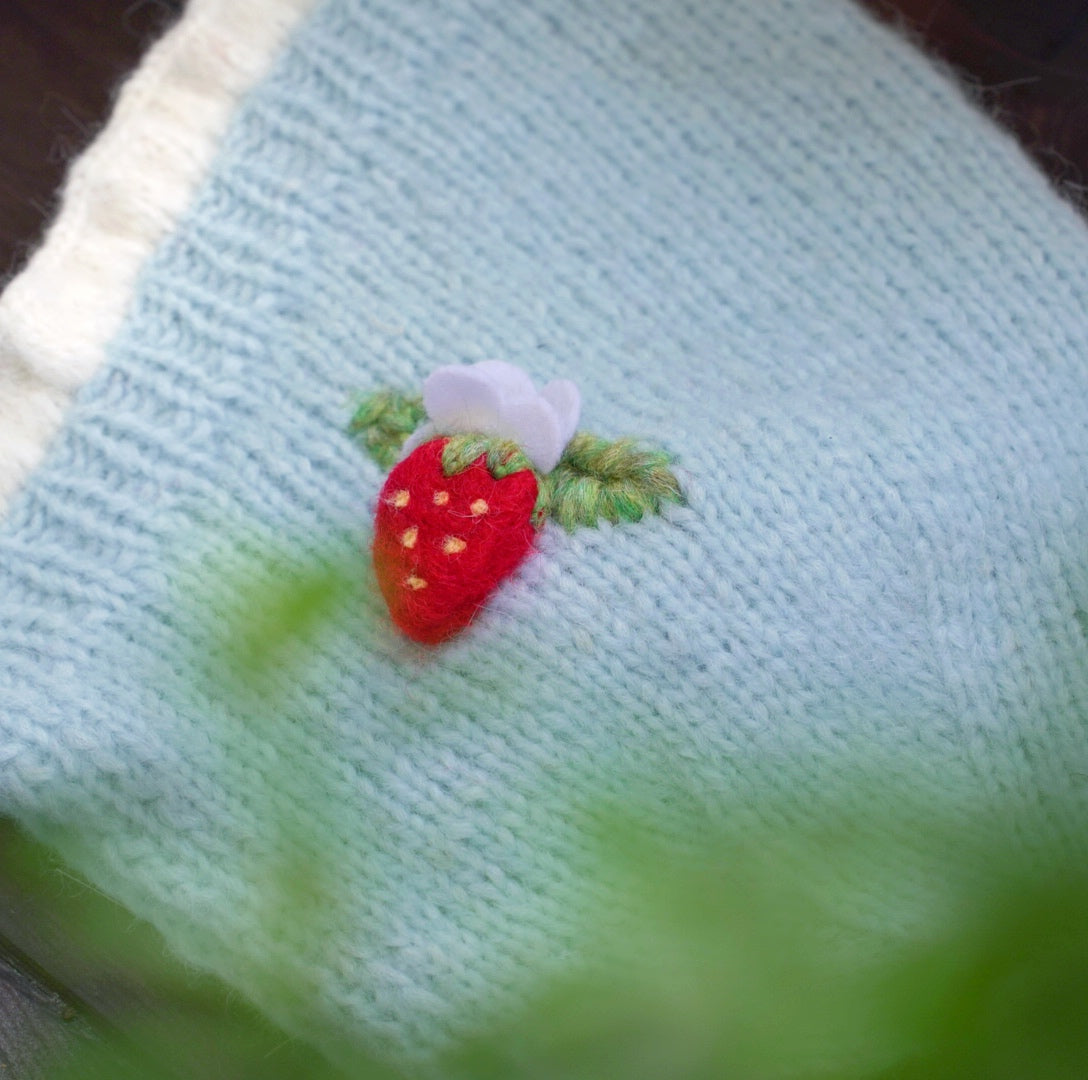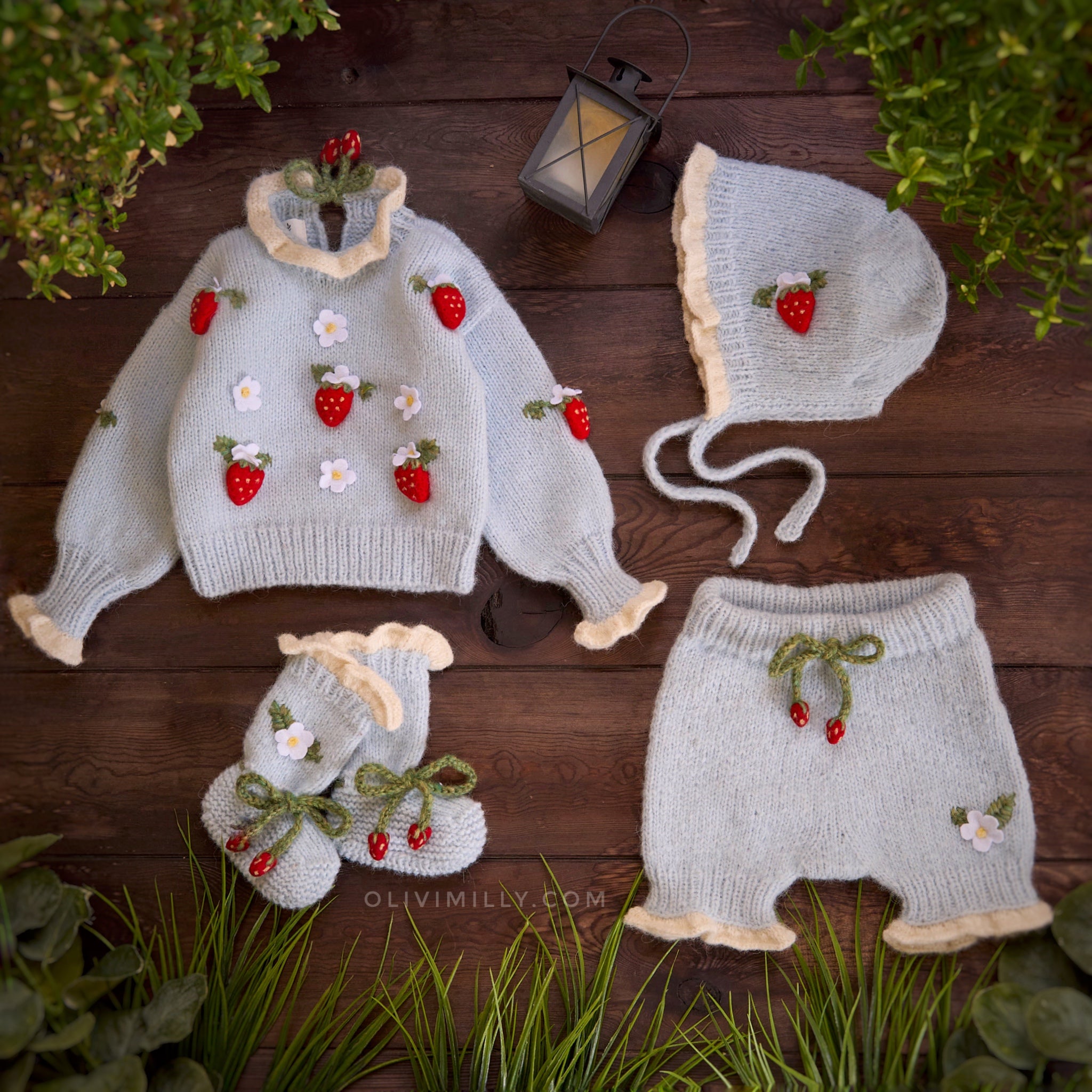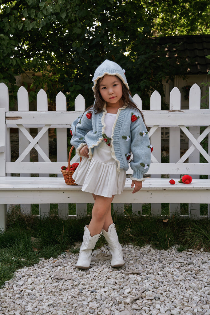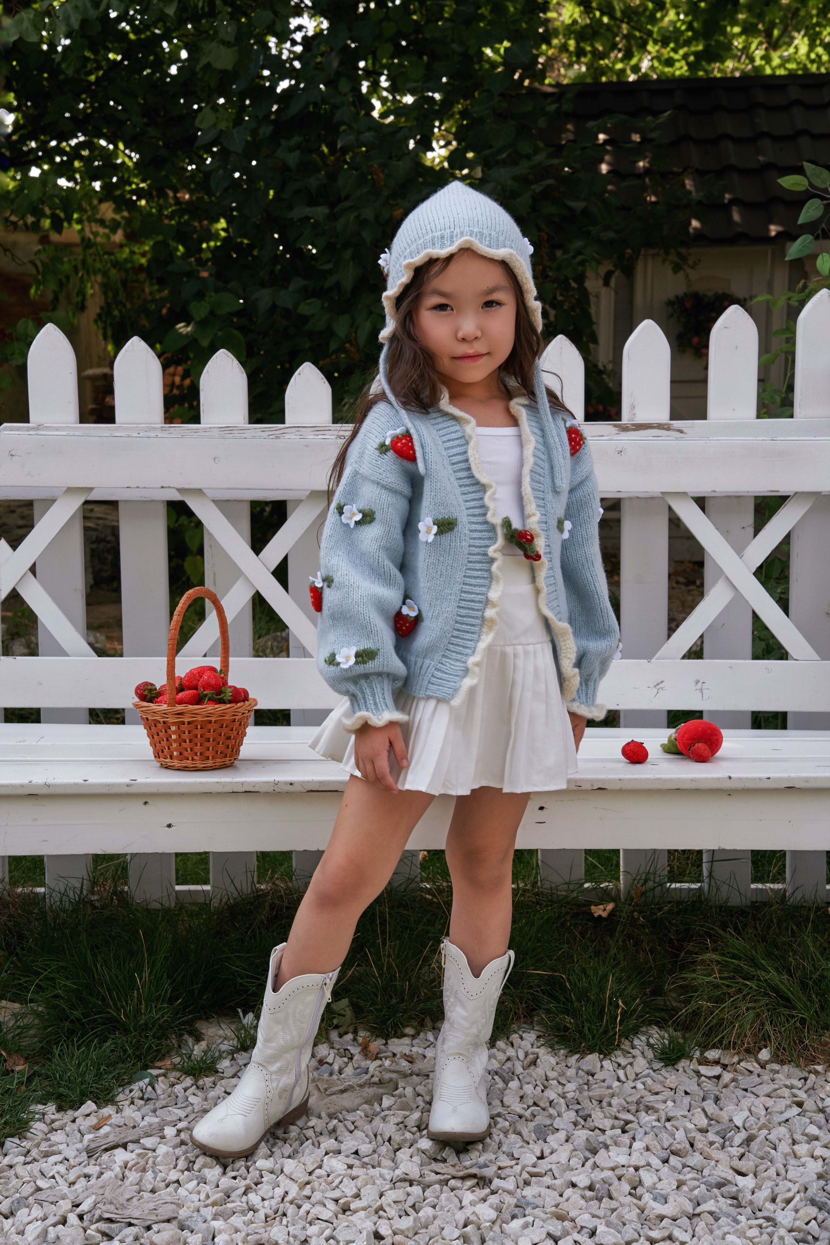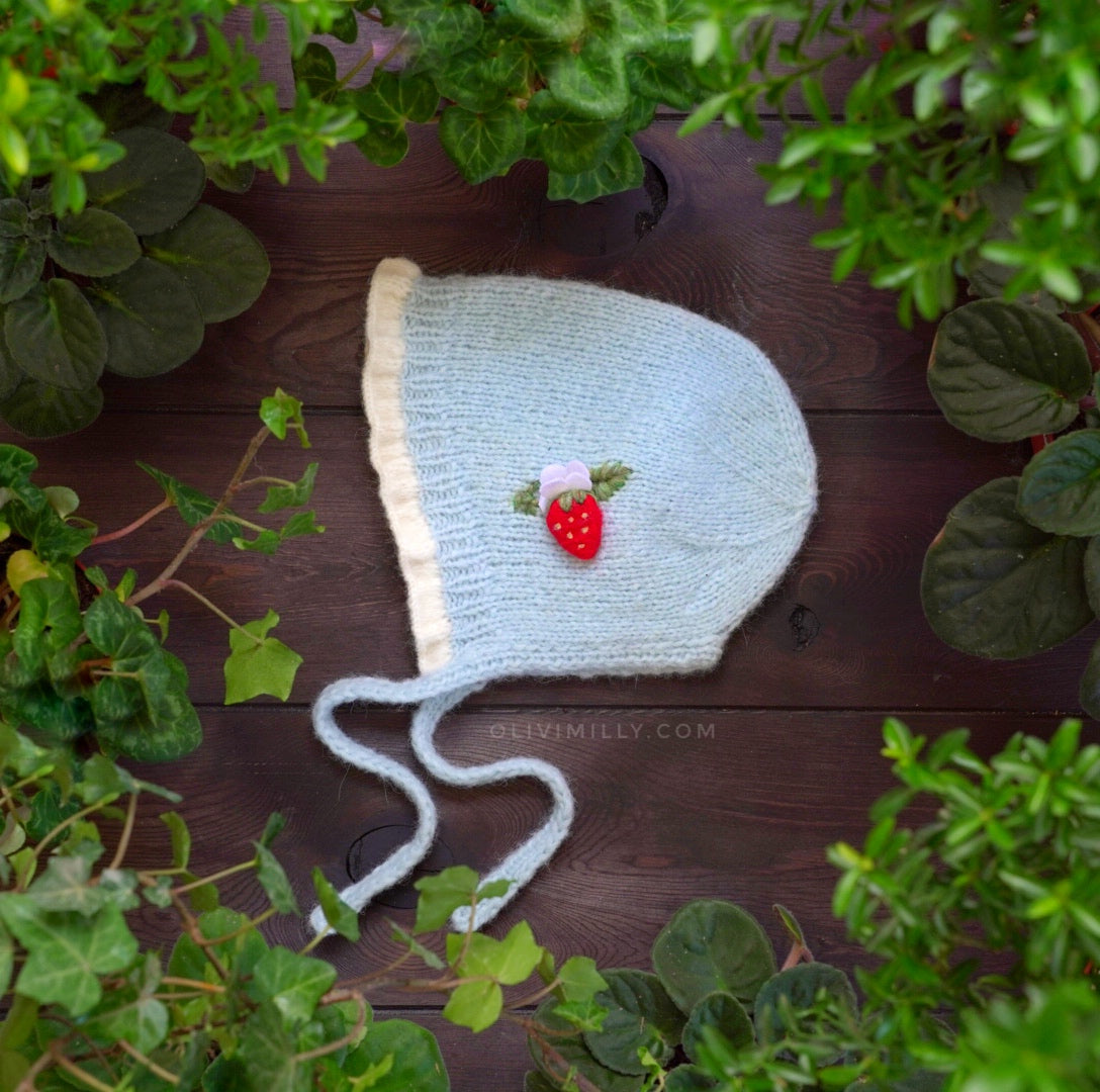 OliviMilly, Strawberries Bonnet - Blue 草莓荷葉針織帽 柔和藍 0-6y