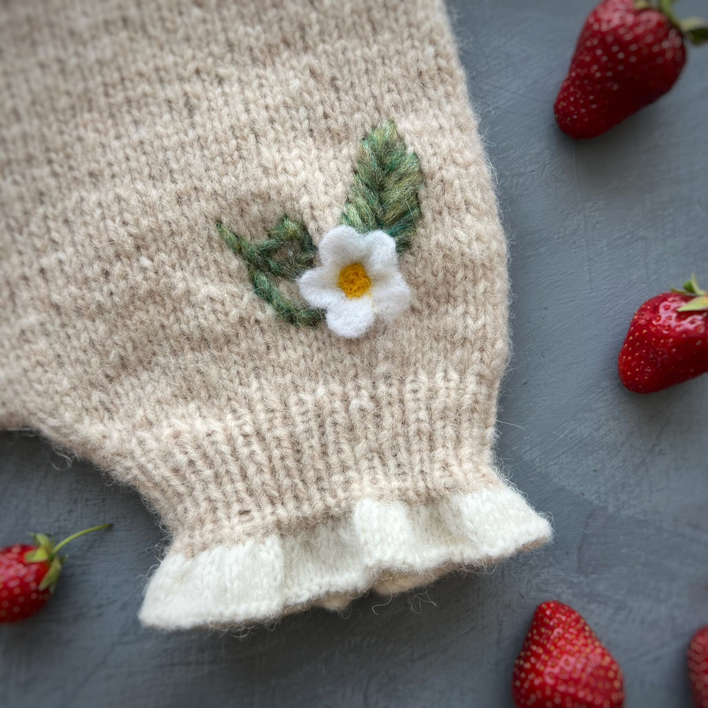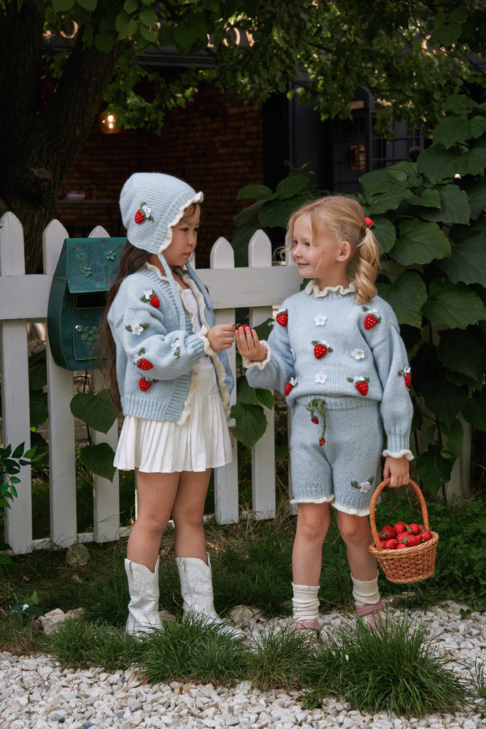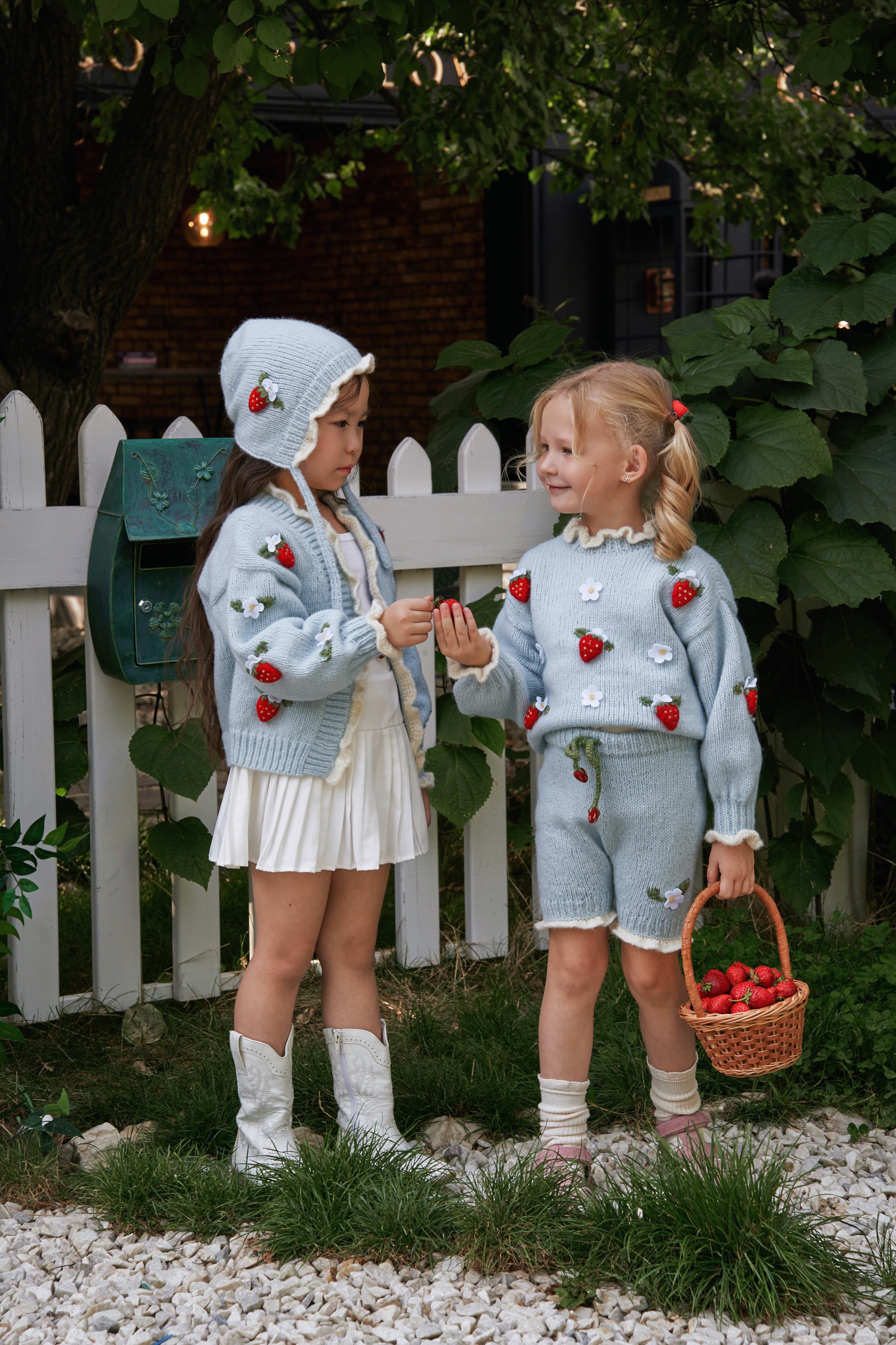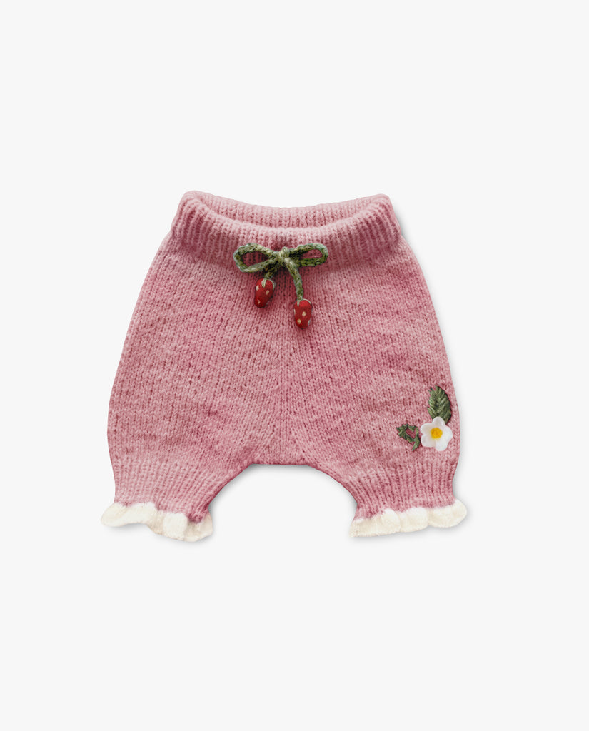 色彩與質感的絕美結合 —— 草莓針織五分短褲 🍓 寬鬆剪裁搭配細緻荷葉邊與立體飽滿的草莓造型,展現甜美又充滿手工溫度的設計感。質地輕盈細緻,溫柔包覆肌膚,是冬日最療癒的織品之一。
